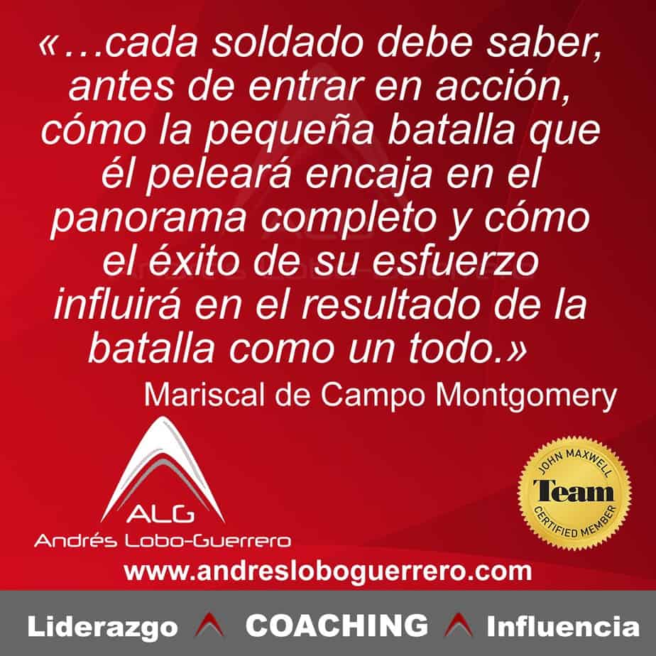En esta ocasión la frase es del Mariscal de Campo Bernard Montgomery «Monty» y dice «…cada soldado debe saber, antes de entrar en acción, cómo la pequeña batalla que él peleará encaja en el gran cuadro y cómo el éxito de su esfuerzo influirá en el resultado de la batalla como un todo.»