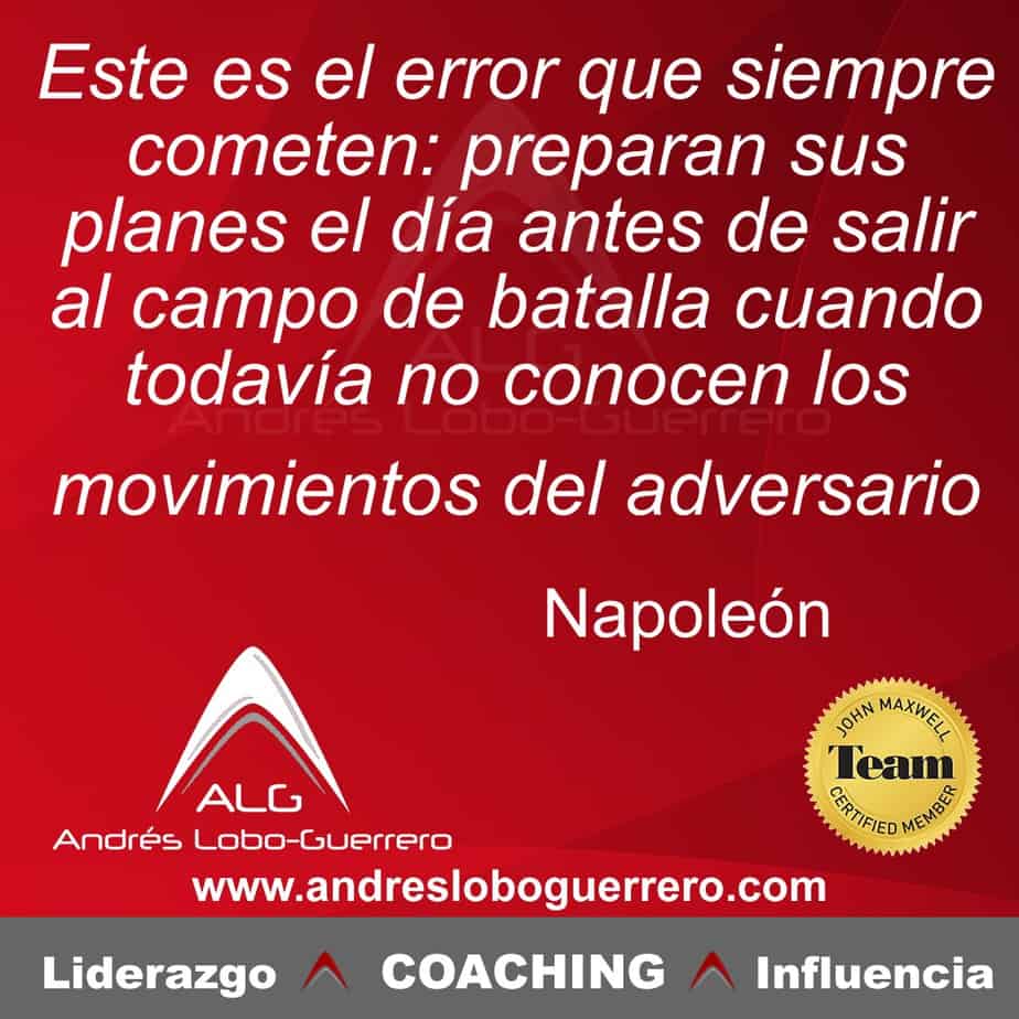 En esta ocasión la frase es del General Napoleon Bonaparte y dice «Este es el error que siempre cometen: preparan sus planes el día antes de salir al campo de batalla cuando todavía no conocen los movimientos del adversario.»